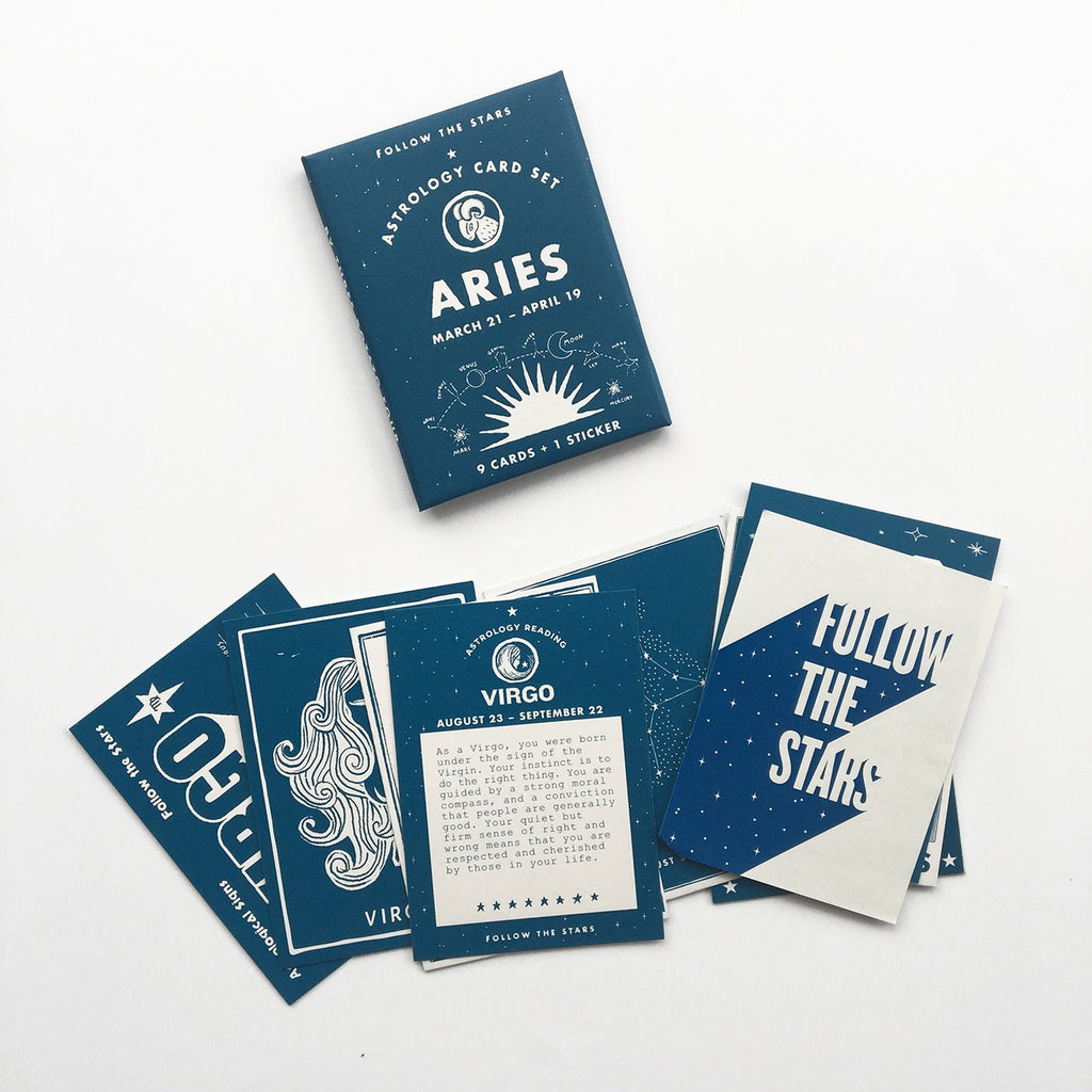 Inspired by vintage collectible trading card sets, our Follow The Stars Astrological Card series explores the secrets encoded in the starry night skies above. Each card pack provides an insightful little glimpse into each star sign and explores our connection to the stars above and to one another.