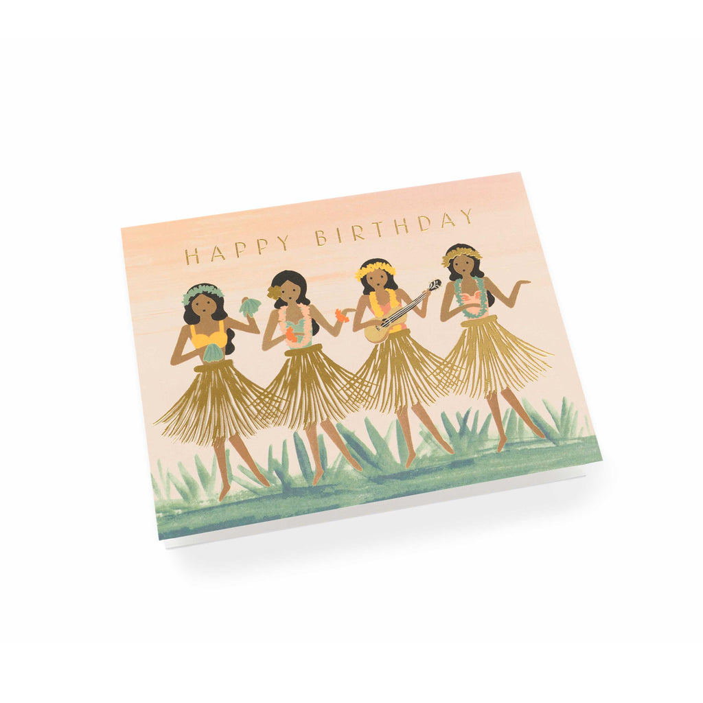 Send your favorite someone a thoughtful message with a special birthday card; propagate paradisal energy and tropical hula vibes with the hula card. A blank interior lets your handwritten note take center stage.