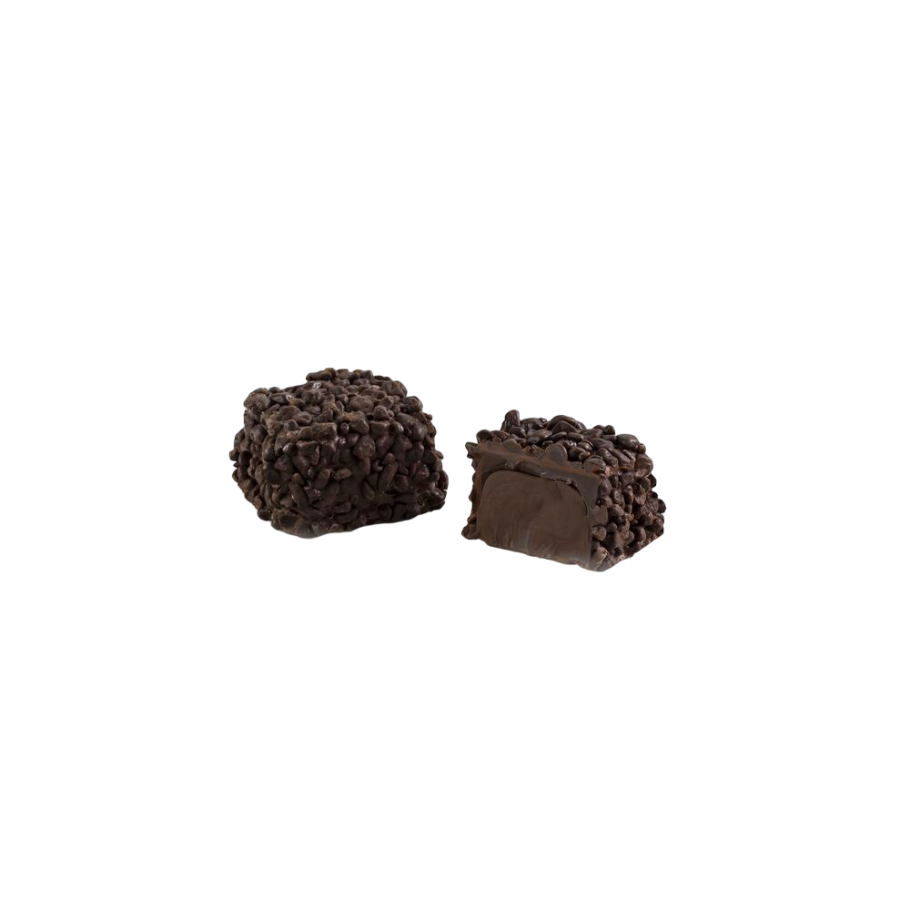 CHOCOLATES WITH EXTRA DARK CHOCOLATE (18.8%) (COCOA SOLIDS: 75% MIN.) FILLING (24%) COVERED BY EXTRA DARK CHOCOLATE GRAINS (25%) (COCOA SOLIDS: 75% MIN.). GLUTEN FREE INGREDIENTS: Cocoa powder, Cocoa butter, Cocoa mass, Sugar, vegetable oils and fats (sunflower oil, cocoa butter, olive oil), Emulsifier: SOY lecithin, Natural vanilla flavor. MAY CONTAIN TRACES OF NUTS AND MILK