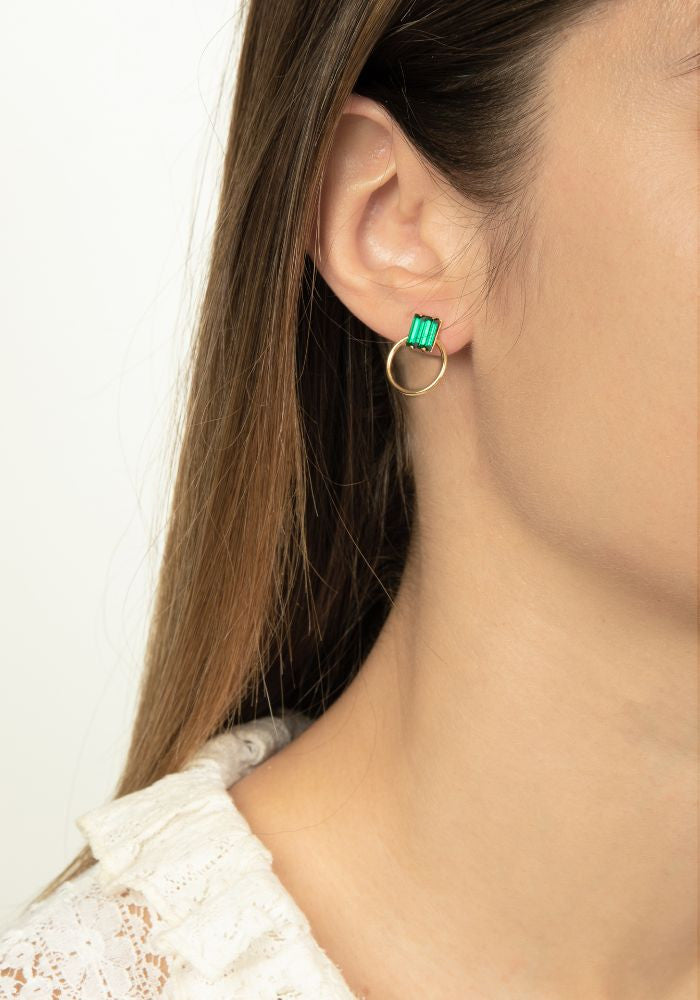 Earrings gilded with 24 carats gold, adorned with green crystals swarovski.