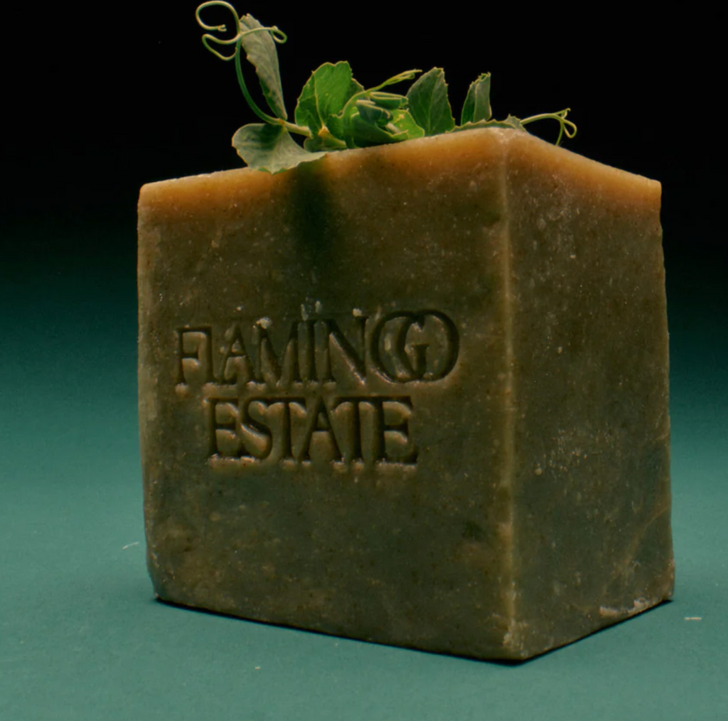 Our Green Goddess Soap is a hymn to the garden at its most alive—lush, dewy, and brimming with green. Basil and Mint rise like a breath of dawn, sharp and exhilarating as the water hits them. The scent of Pea Tendrils unfurl with a sweetness and crispness. Rosemary deepens the chorus with its resinous warmth, and Ginger threads through it all with a golden streak. This is our new favorite, the best of Flamingo Estate in one beautiful Soap.