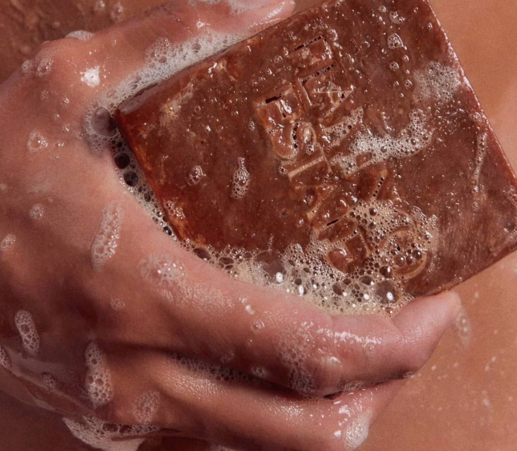 Orbignya Oleifera (Babassu) Seed Oil*, Cocos Nucifera (Coconut) Oil*, Parfum (Fragrance+), Olea Europaea (Olive) Fruit Oil*, Sodium Chloride, Organic Piper Nigrum (Pepper) Fruit Extract, Artemisia Dracunculus (Tarragon) Leaf/Stem Extract, Solanum Lycopersicum (Tomato) Fruit Powder, Kaolin, Montmorillonite, Mica, Beta Vulgaris (Beet) Root Powder, Sodium Hydroxide. *ORGANIC +100% NATURAL FRAGRANCE from essential oils and plant extracts