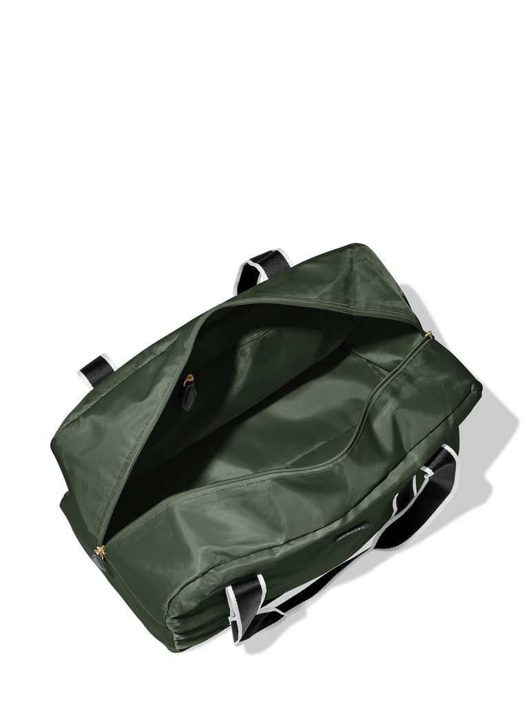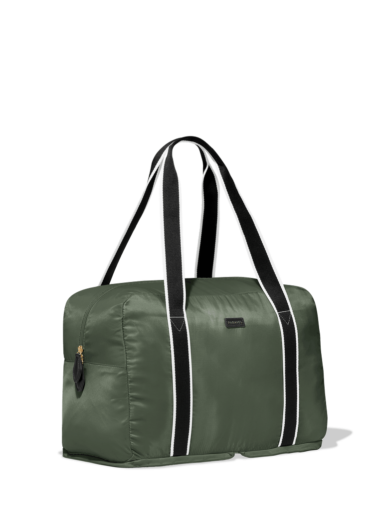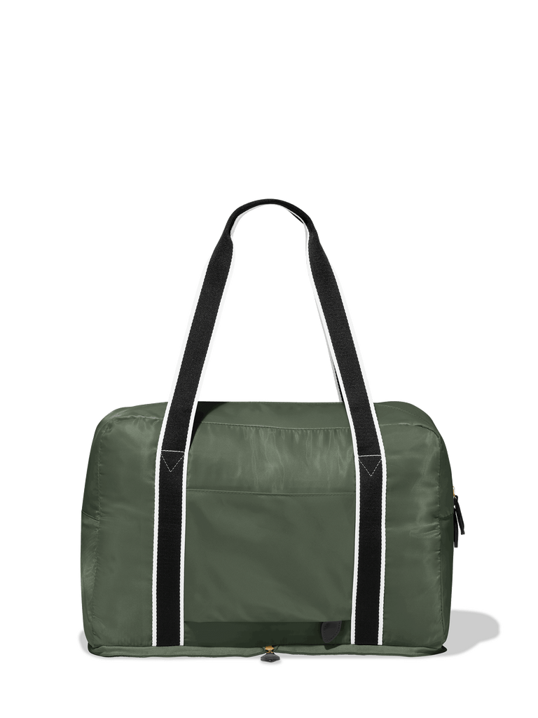 It’s an everyday duffle, perfect for planes, in cars, at the office, and to the gym, with a not-so-everyday detail: it folds up flat and zips into a barely-there pouch. Pack it up. Fold it up. And go.