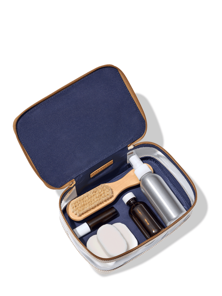 Our Vanity Case is spacious enough to pack all your toiletries, lightweight enough to never weigh you down, and strong enough to take on any errant in-transit messes (it can easily be wiped down). Stow it in your carry-on, set it out in your hotel room, or use it as your vanity case right at home. - For organizing your toiletries, toting them around, and finding what you need easily - Fits the kitchen sink (travel-size shampoo, conditioner, toner, face wash, toothpaste, serums, creams, dry brush, and more)