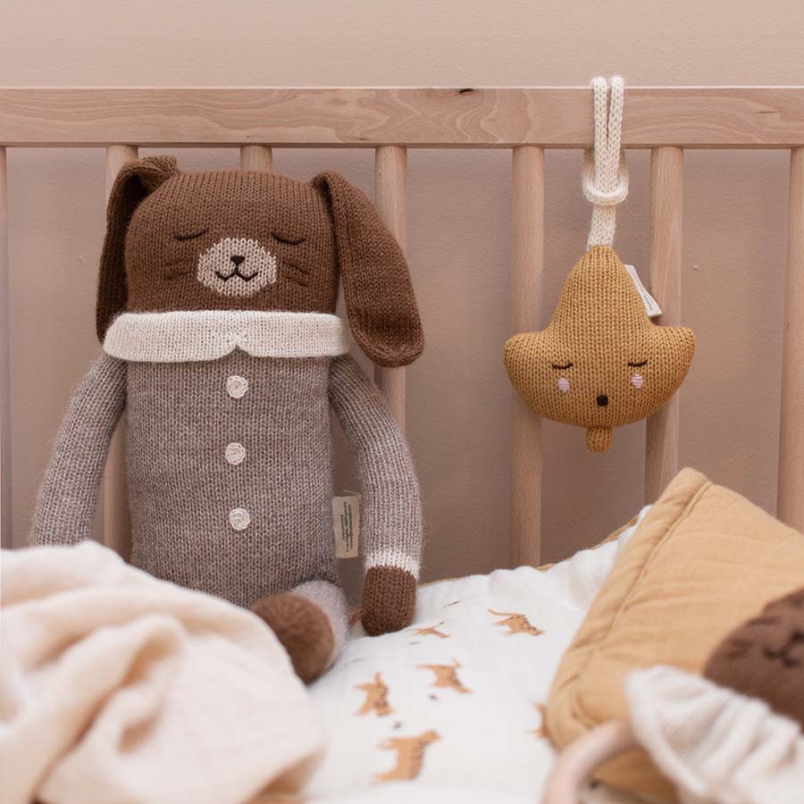 Handknitted in a fair-trade workshop in Bolivia, this doll’s making supports an intelligent production, respectful of Earth and humans’ rights. It is made in pure baby alpaca wool, which is antibacterial and perfectly adapted for sensitive skins.