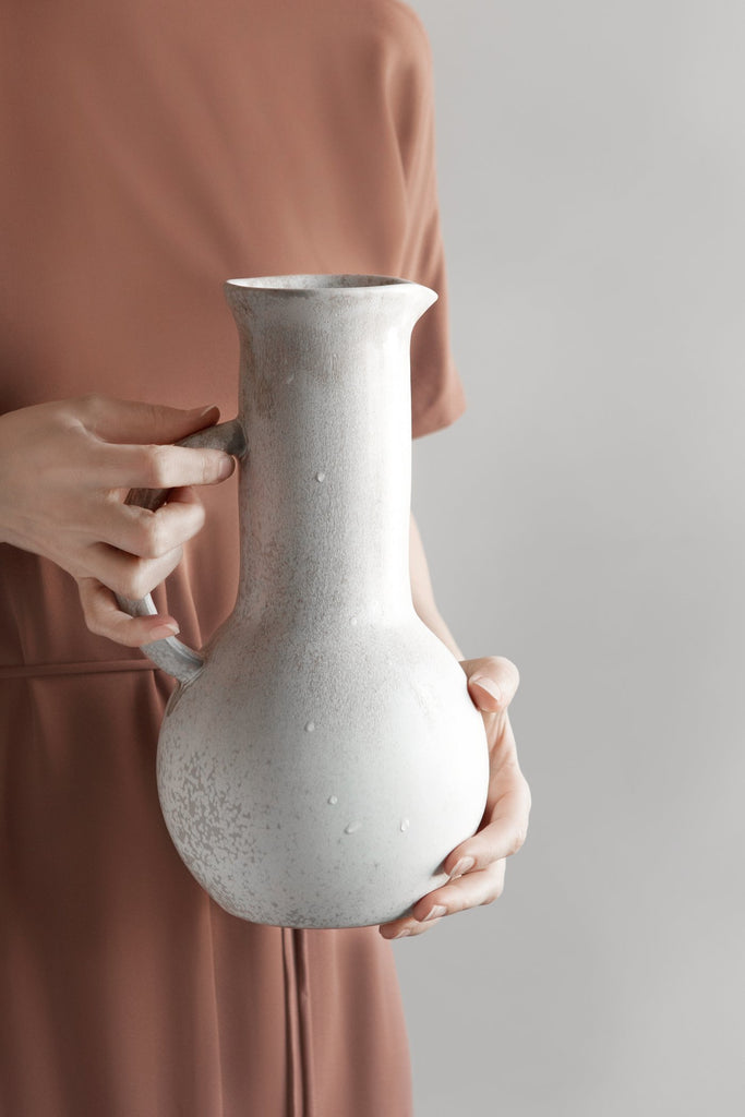 With a gentle nod to the classical Greek Oenochoe, our pitcher is made with gatherings in mind. Pour out your favorite wine, summer mixed drink, water, or use it as a vase.