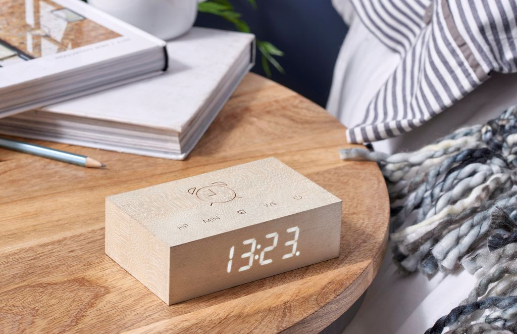 The Flip Click Clock is now crafted with natural wood material (Cherry, Walnut, Ash and White Maple) and incorporated with our popular sound activated LED clock system , laser engraved touch control top and the new flip alarm technology. It’s designed to enhance your whole experience of day to day alarm clock use.