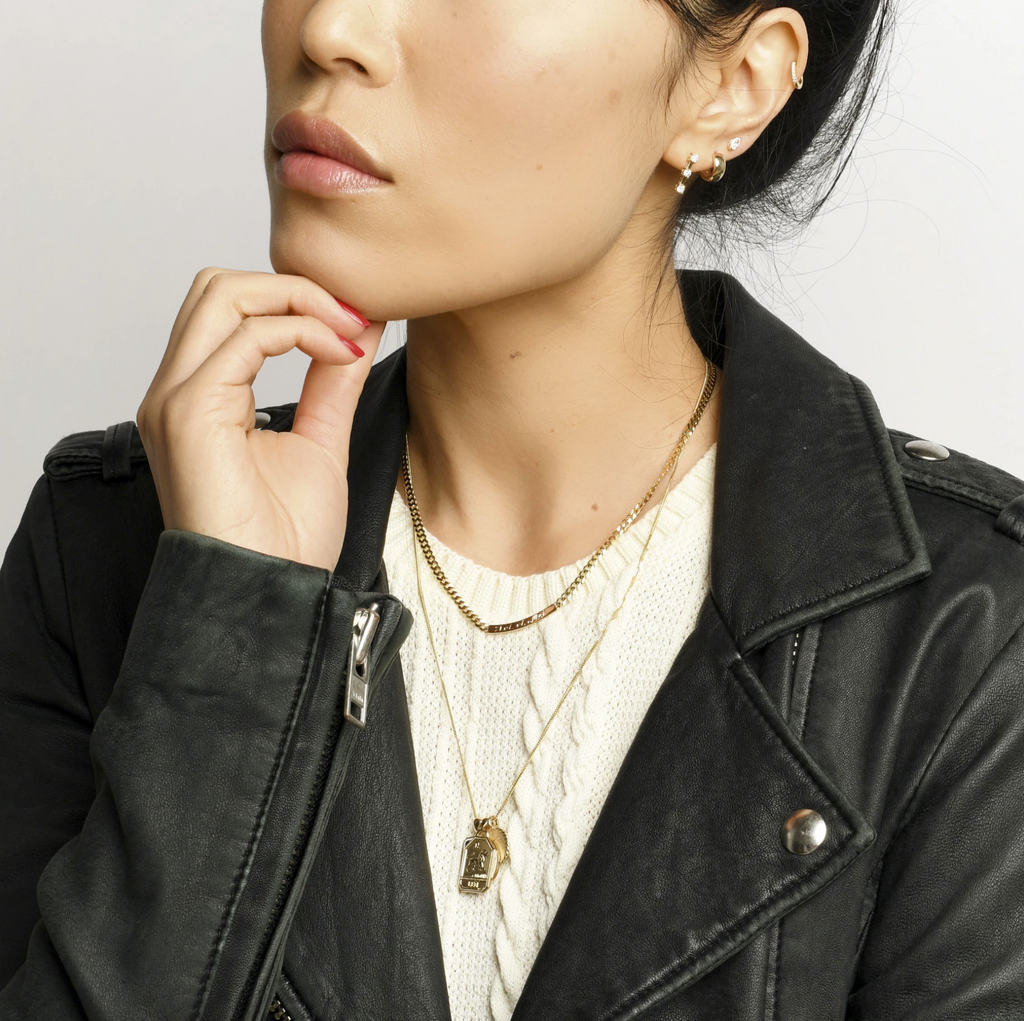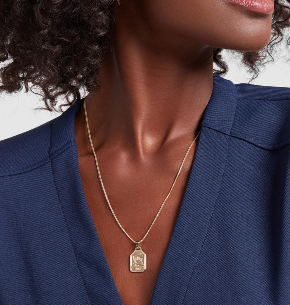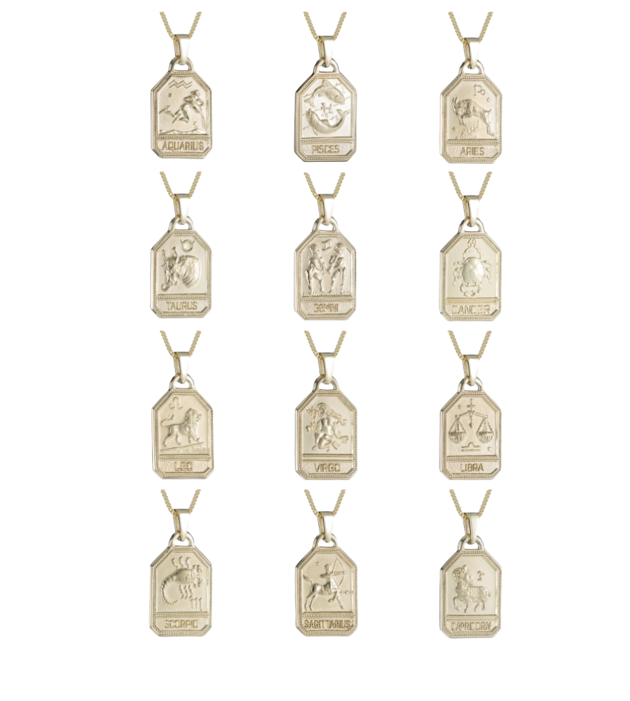 | Express yourself in a uniquely charming way with our new Zodiac Dog Tag collection. On a longer-than-usual Singapore Foxtail chain, these die-struck charms have a luxe 70's feel that is great for every day wear with a crewneck, a deep v, or worn over a turtleneck. Handmade with love in Los Angeles. |