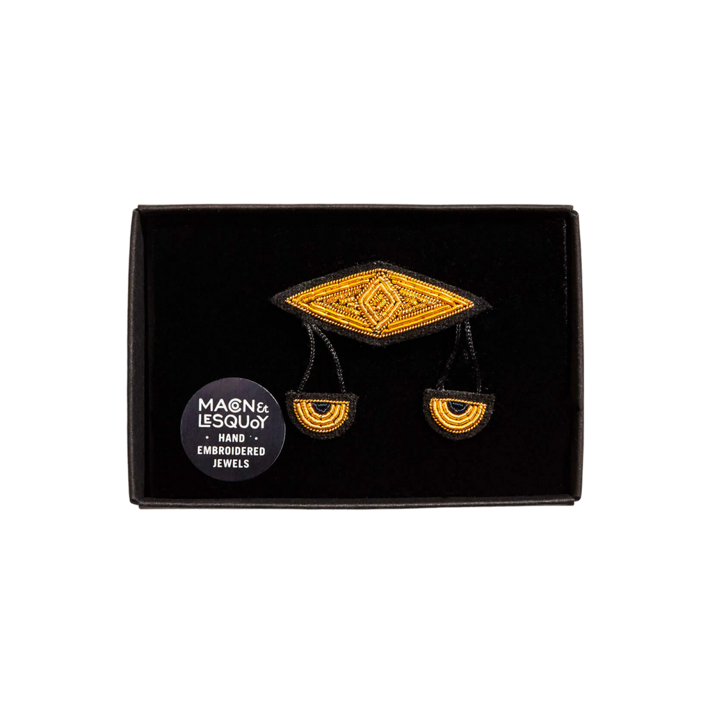Designed and embroidered with care, Macon & Lesquoy brooches are the essential accessory for elegance... right up to the black, velvet and foam cushioned box! The embroideries of our brooches are created and designed especially by M&L designers. They are entirely handmade, in cannetille thread, according to a very old Indo-Pakistani technique.