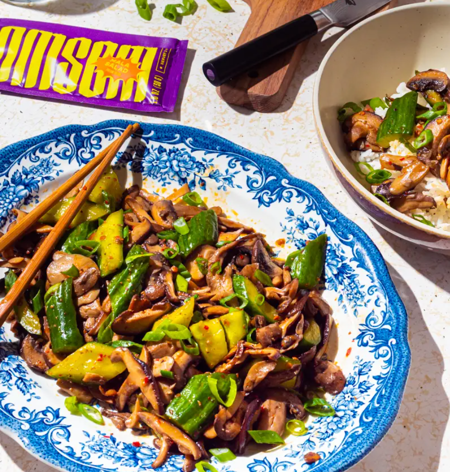 Equal parts refreshing, savory, and spicy, this dish gets its fiery kick from Sichuan peppercorn. Make it with smashed cucumbers + your choice of protein, and you're in for a tingly, numbing, refreshingly crisp meal.