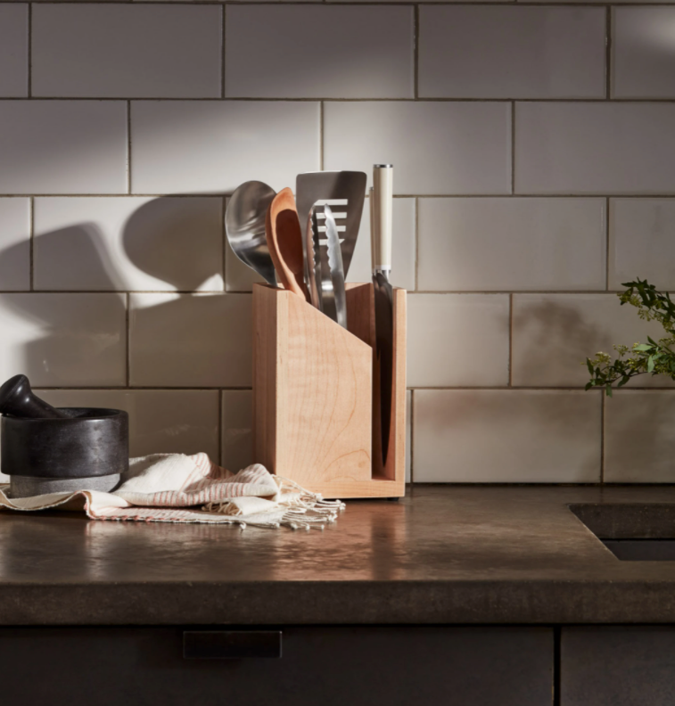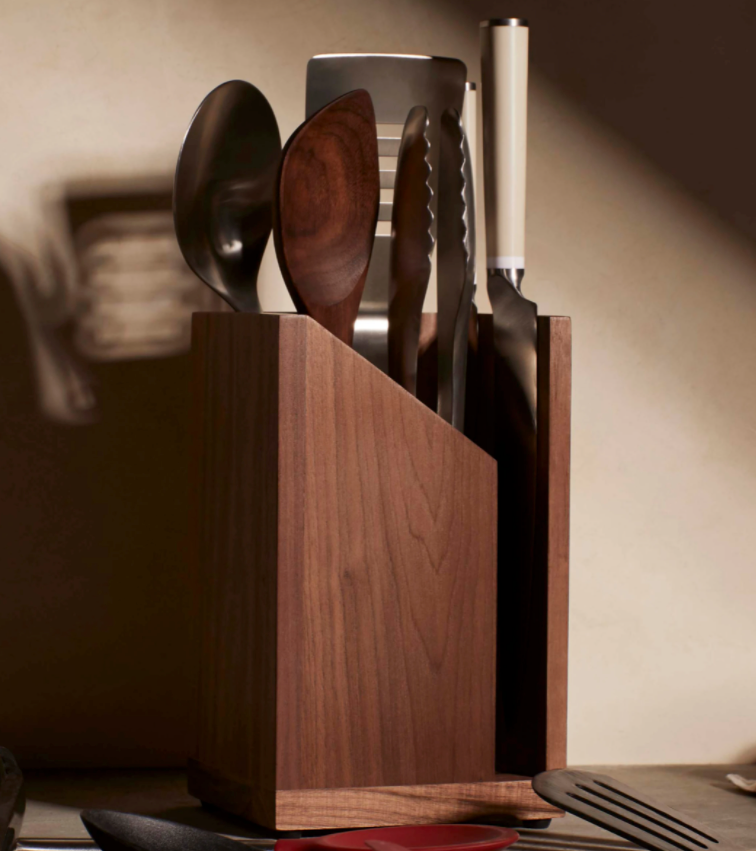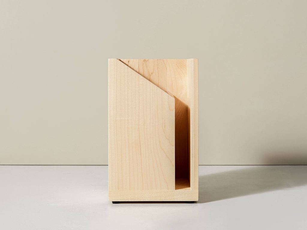 We believe in form and function, and our storage solutions are no exception to the rule. Yes, it is a knife holder. Sure, it holds the other utensils. But it's the angular design, natural wood, and minimal footprint that makes The Base so attractive. The extra bit of magic? The inner wall of the base is magnetic, holding up your knives safely and keeping them neatly organized (and accessible!) without dulling your blade's tips.