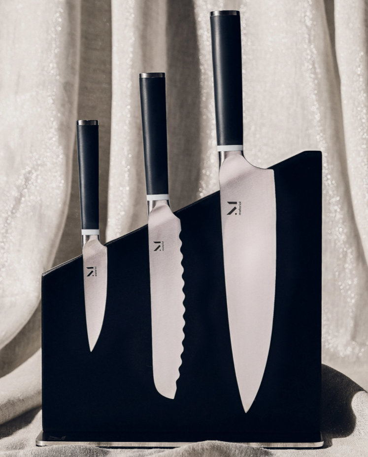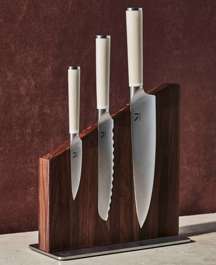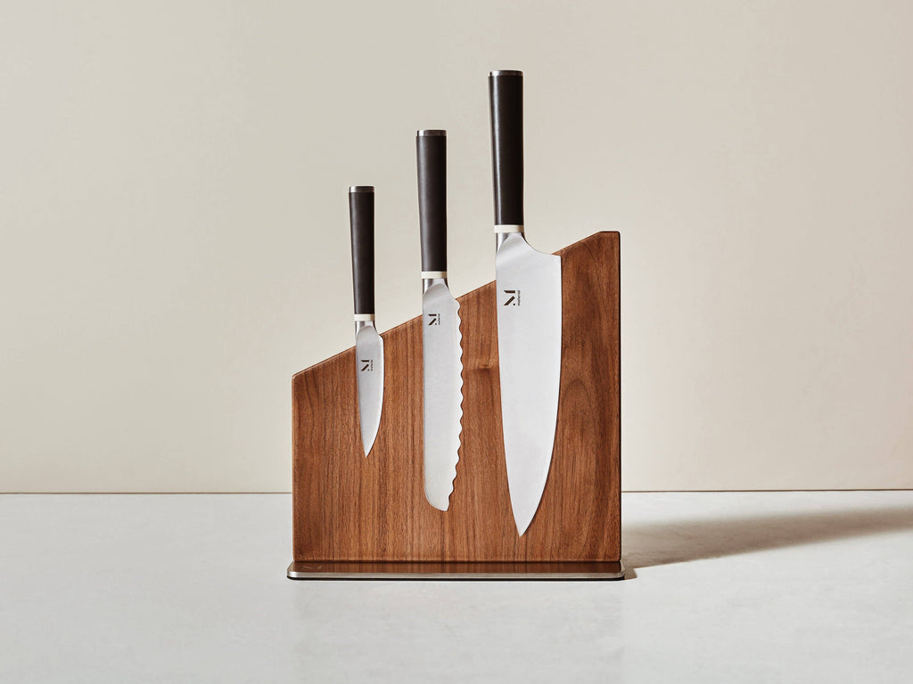 Just the right size, just the right weight, just what you need. A trio of high-performance knives, made from cryogenically-tempered Japanese stainless steel and high carbon making them meticulously sharp and incredibly resilient. With a matte, stain-resistant handle, you’ll want to show these off. To help show these off, add The Stand, which magnetically holds 6-8 knives.