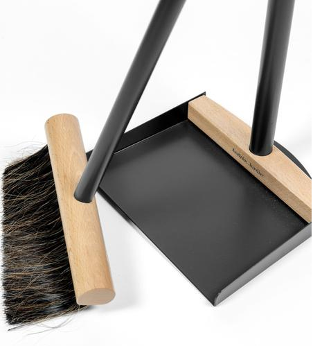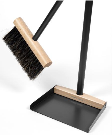 No need to hide the Complet set in the closet! The broom nests conveniently in the handle of the free standing dustpan making this attractive pair easy to store in plain sight. Broom features a lacquered beech wood handle and mixed horsehair and synthetic bristles. Pan is lacquered steel. Set comes in gift ready box. 100% Made in France.
