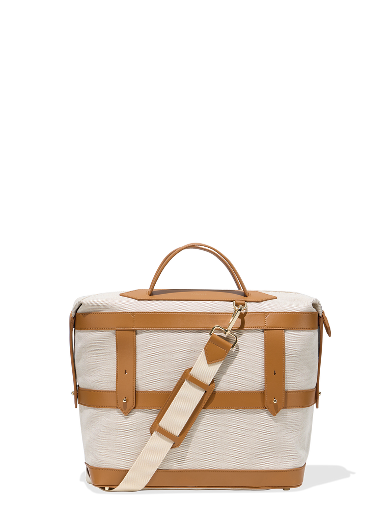 A cult favorite, the Weekender is perfect for short trips or as a companion to your suitcase (featuring smart straps that slip over the handles of your luggage). A luxurious and sustainable piece that will last a lifetime.
