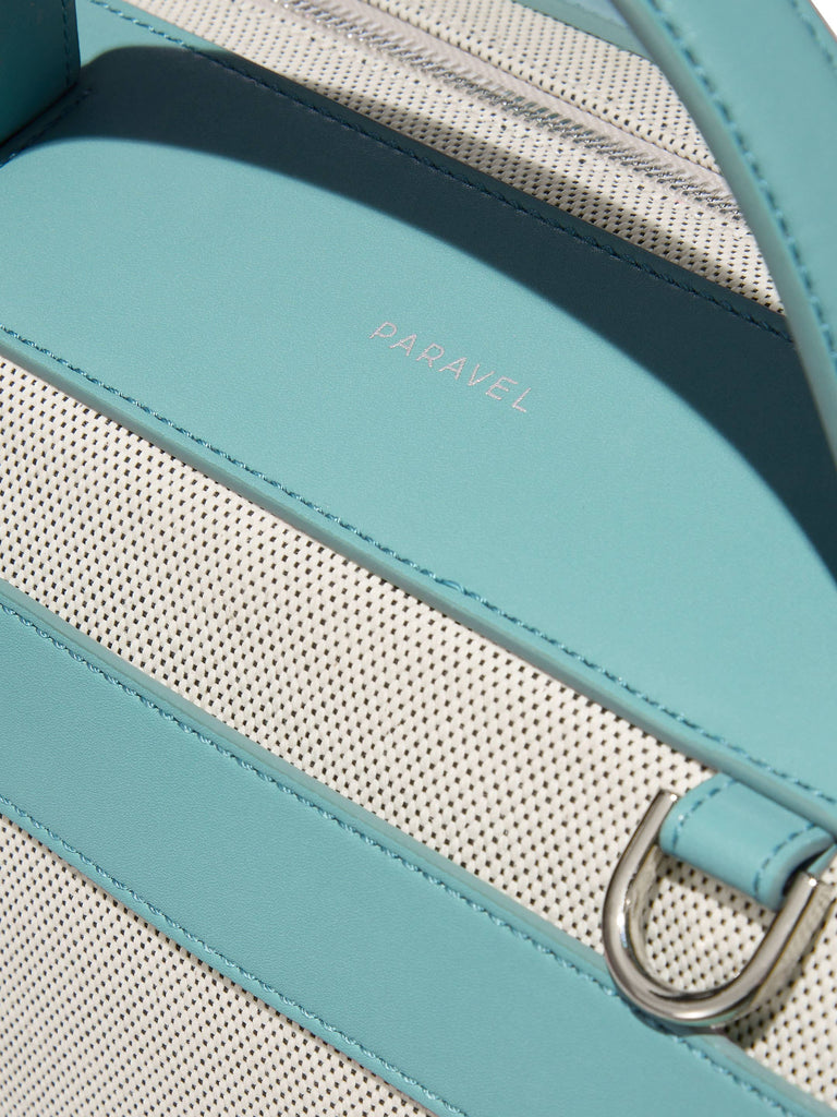- Made from 12 recycled plastic bottles, featuring recycled vegan leather details -Fits in airplane overhead compartments